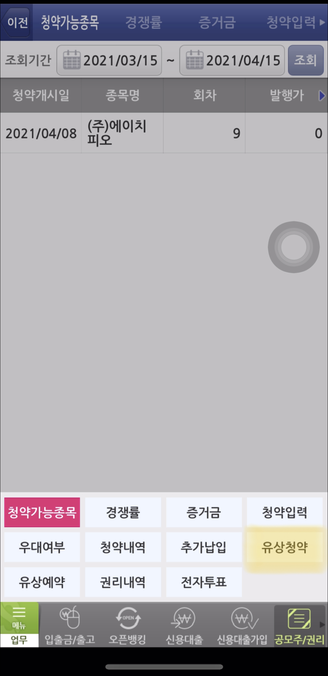 4. 그럼 메뉴가 뜨는데 {유상청약}을 누른다.