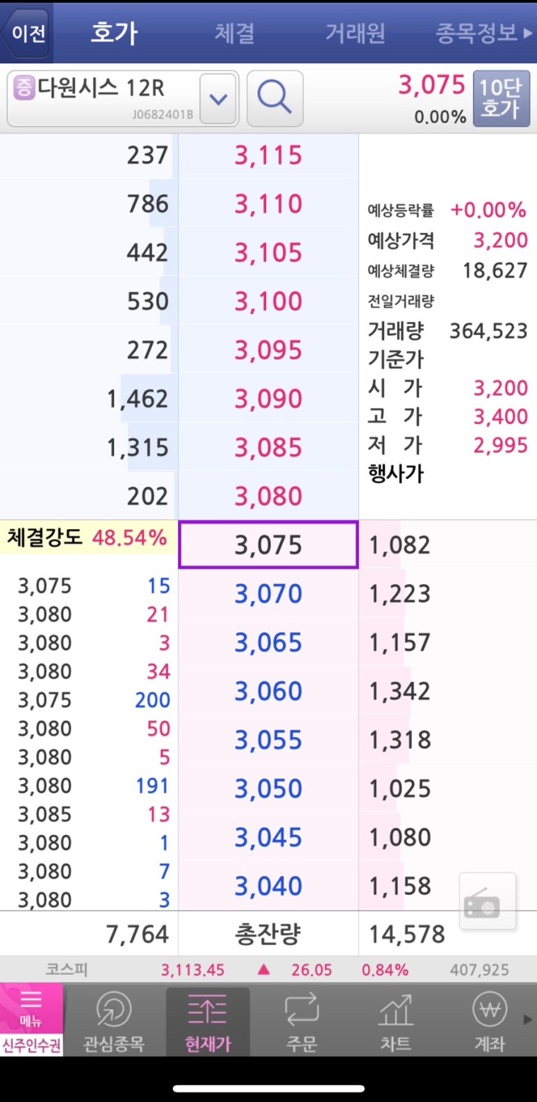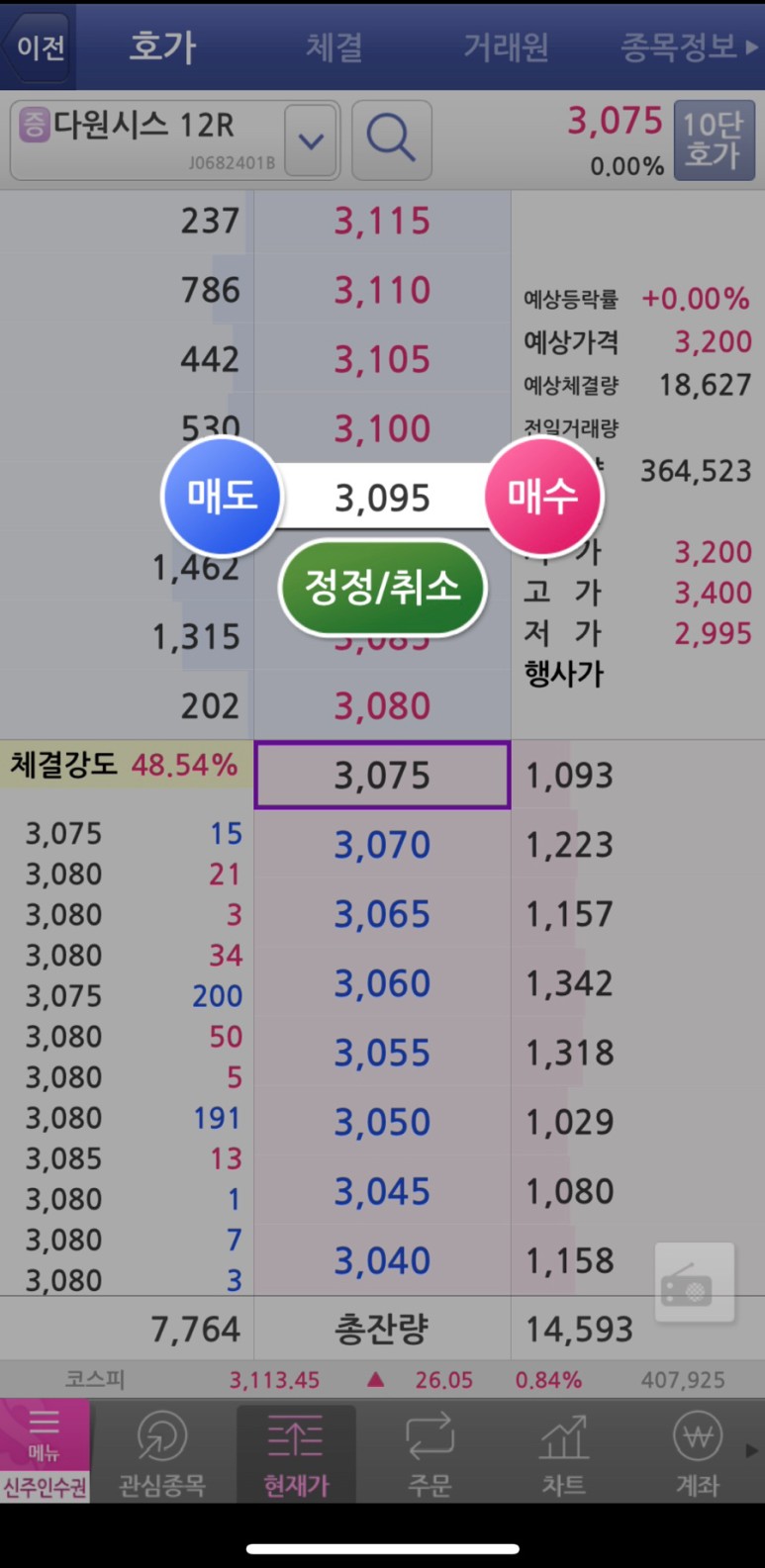2. [다원시스12R]누르면 호가, 차트, 매도가 보여요