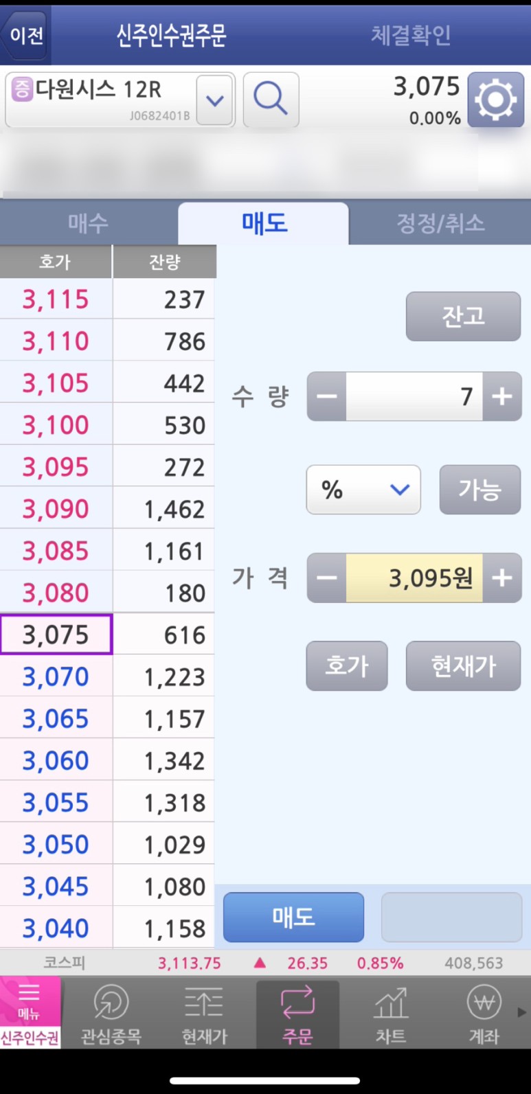 저는 매도에 관심이 있으니[매도]를 눌렀습니다