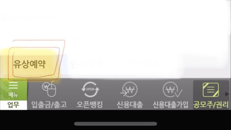 1. {업무}를 누르고. -> {공모주/권리}를 누른다