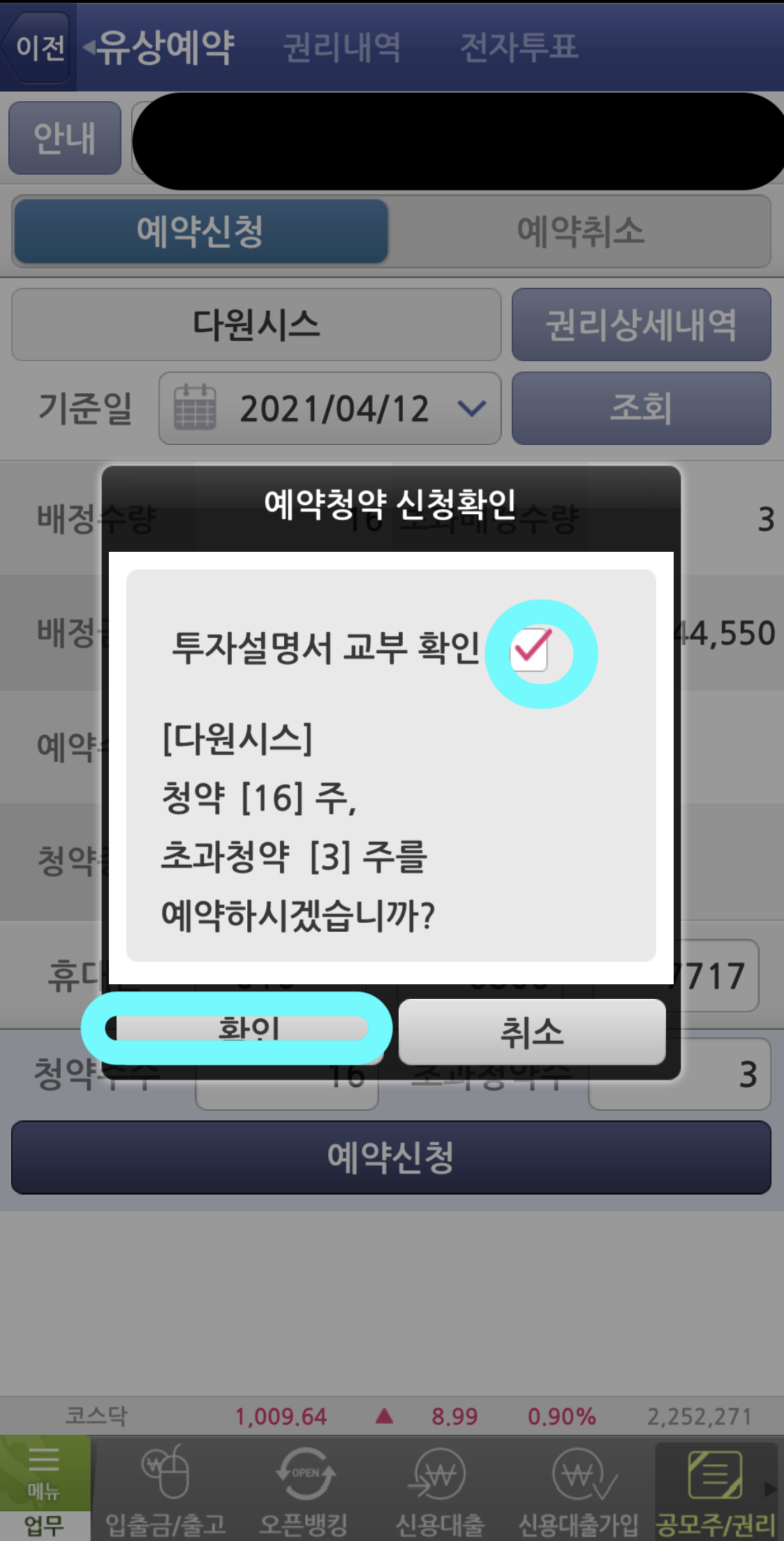 [다원시스유상증자] 유상예약 잘 됐는지 확인해보자!(영웅문s)