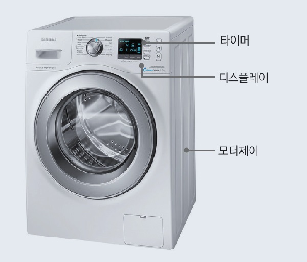 MCU는 세탁기의 타이머, 디스플레이, 모터제어 기능을 구현한다.