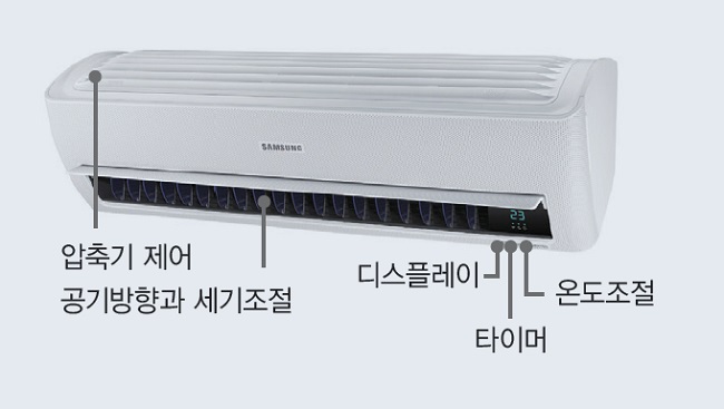 MCU는 에어컨의 공기방향과 세기조절, 압축기 제어, 디스플레이, 온도조절, 타이머 기능을 구현한다.