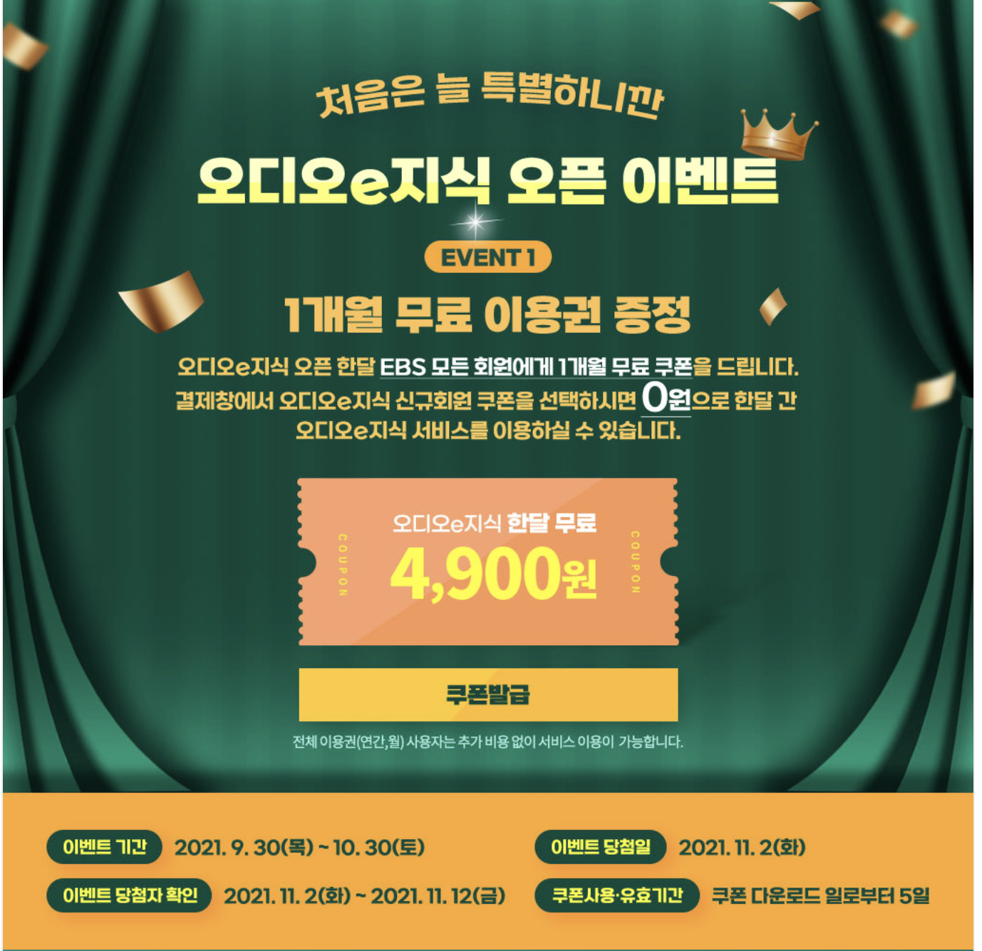 [EBS이벤트] 오디오e지식 1개월무료이용권 이벤트 중!!정보 2021. 10. 4. 18:08반응형