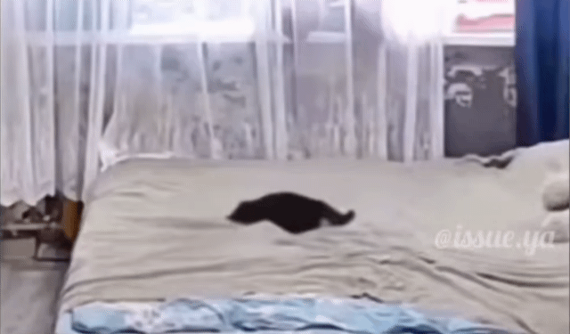 침구 엉망으로 만든 아기냥 혼내고 침구 정리하는 어미냥